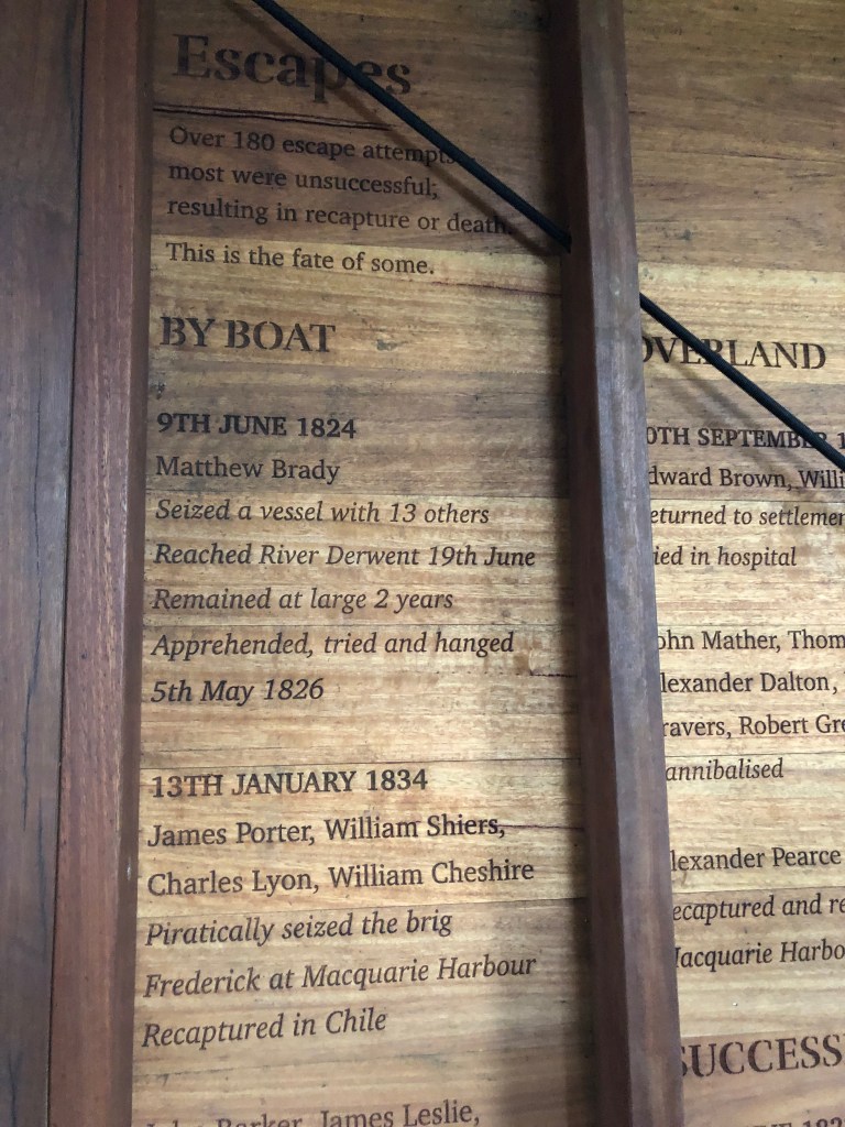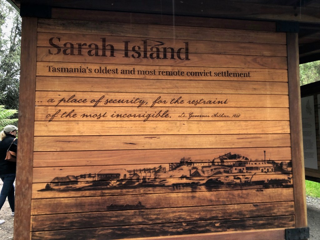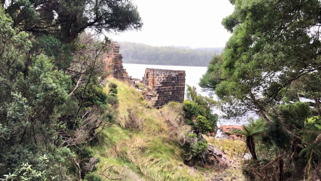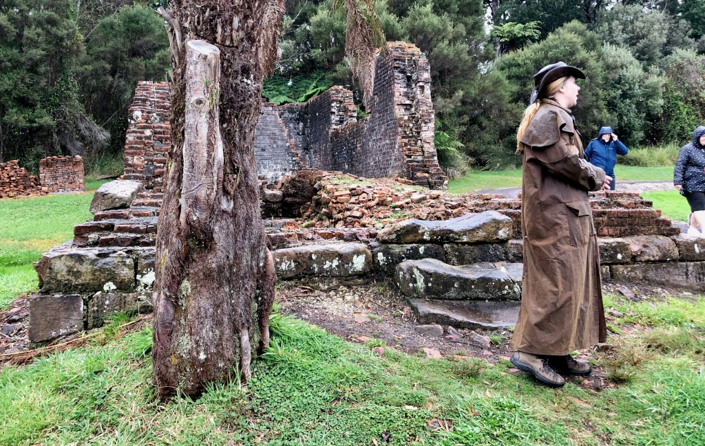 On Sarah Island we are split into groups lead by a local Park Ranger with great knowledge of the islands long and hard history. Sarah Island was established in 1821, and our visit, with the wind blowing from the west, the Roaring Forties no less, frequent cold showers of rain and a chill not easy to hold off with our warm coats and raincoats really makes you wonder at the conditions the men endured here in this most remote penal compound in Van Diemen’s Land. Stories recounted by the Rangers and written on the many notices around this small island speak only of toil, hardship, foul weather, punishments, sickness and death. Only the worst of the worst convicts were sent here, especially if they had escaped from another compound.