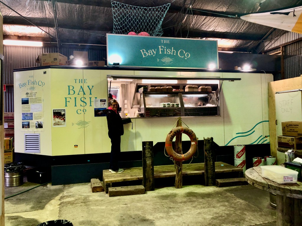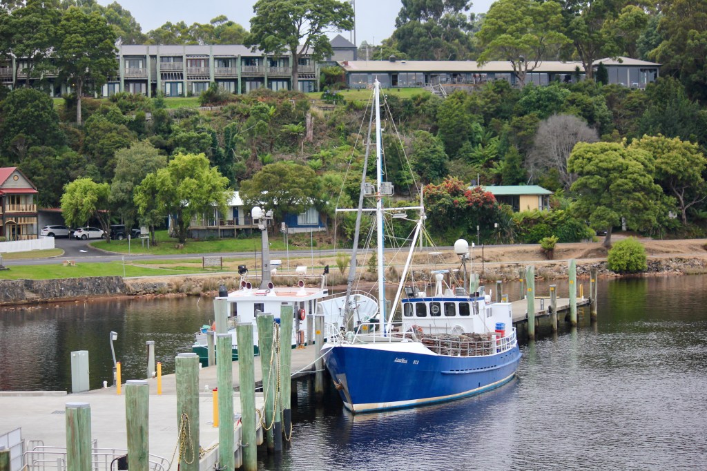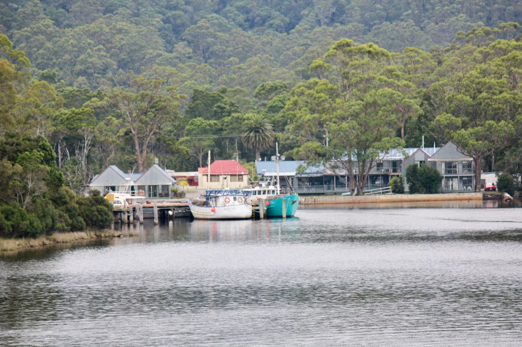 Next stop, Strahan where we went against all habits and had booked ahead at the Strahan Beach Tourist Park…that’s us, touristas! The park is sort of on a beach facing south down the huge expanse of Macquarie Harbour. What was originally a port for the mining and timber industry is now a tourist mecca and fishing village. For tourism, Strahan is the gateway to the Heritage listed South West Wilderness of the Gordon and Franklin Rivers. An afternoon excursion into the town centre and we reckon it’s lovely. For a start the camp is an easy walk or bike ride to the town which consists of a long main street facing an equally long dock and harbour. Obviously the day cruise boats are the main game in town and there is a large modern building along the wharf housing their booking offices and shops. At the western end of the wharfs is a large Tourist Info office and a small outdoor auditorium. Along the inland side of the road is a really long old hotel running into some shops then AirBnB houses and apartments. In all, it’s a quaint tourist village.